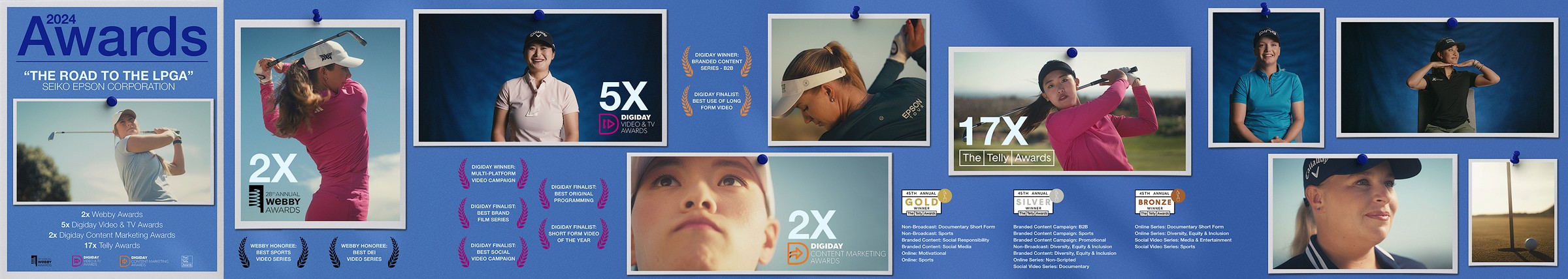 The Road to the LPGA is a premium mini-doc series we concepted, directed, and produced to reveal what it truly takes to reach the highest level of women’s professional golf. Told through the unscripted voices of ten LPGA rookies, the series explores mental health, overcoming adversity, leadership, teamwork, and the global growth of the game. Distributed globally, the series showcases athletes from a wide range of countries, regions, and backgrounds, amplifying the Epson Tour’s purpose: providing women around the world the opportunity to pursue lifelong dreams and earn their place on the LPGA Tour. By centering real players and authentic stories, the project elevated the human side of elite competition while strengthening Epson’s global partnership with the LPGA Tour. Produced in partnership with Seiko Epson Corporation and the LPGA Tour, The Road to the LPGA received widespread industry recognition, earning 17 Telly Awards, including Best Non-Broadcast Documentary, Best Non-Broadcast Sports Series, and Best Branded Content for Social Media; 7 Digiday Awards, including Best Multi-Platform Video Campaign and Best Branded Content Series (B2B); and 2 Webby Award Honoree distinctions, including Best Sports Video Series. The series was recognized alongside leading sports and cultural platforms such as The Olympic Channel, Warner Bros. Discovery Sports, UFC, Amazon, and PBS Digital Studios. The result is a globally celebrated, athlete-first documentary series that set a new benchmark for branded storytelling in women’s sports and reaffirmed the power of authentic voices and storytelling at the highest level of sport.